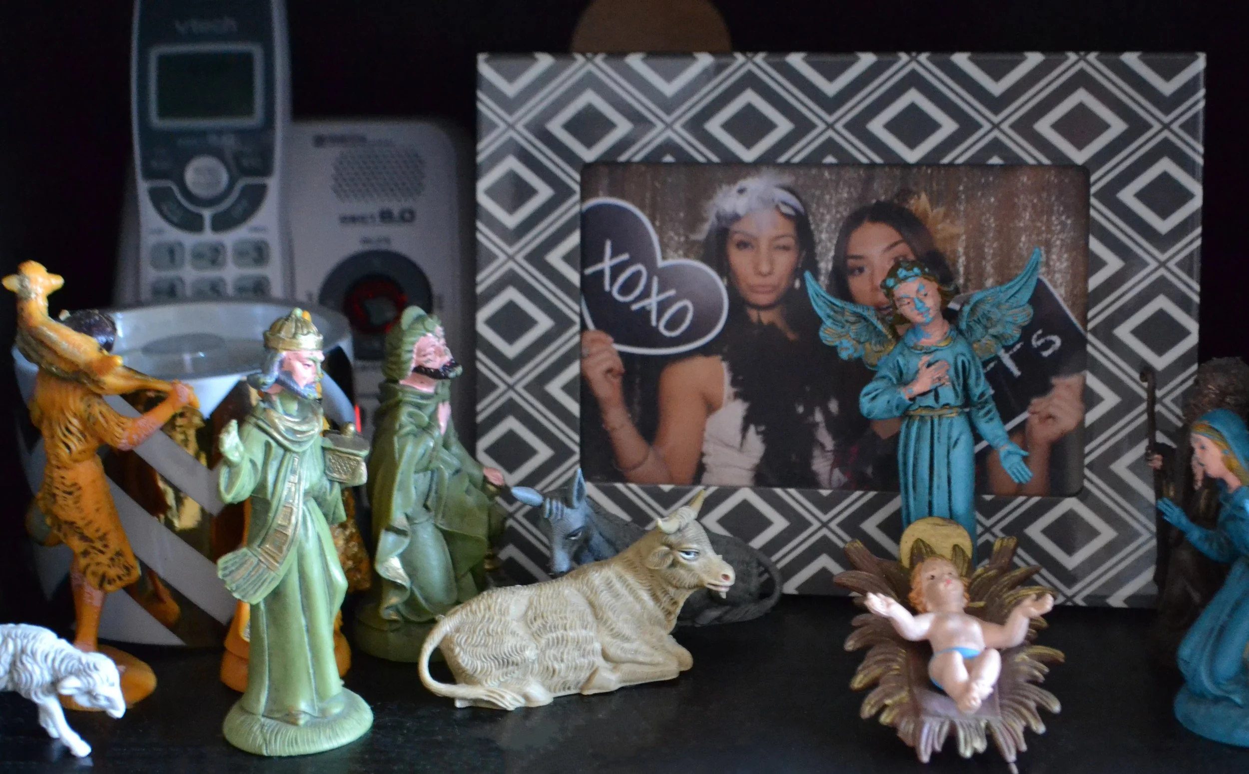 This is the nativity set I grew up with. My mom had a little manger doll house thing for them to sit pretty in, but I’m not sure what happened to it. // When I moved into my apartment two years ago, I took them with me and had plans to maybe spray-paint them gold, modernize them like a true millennial. I can’t though. They’re vintage and covered in memories. The paint on Joseph’s face is chewed off from my childhood pup, and that’s kind of means the world to me.